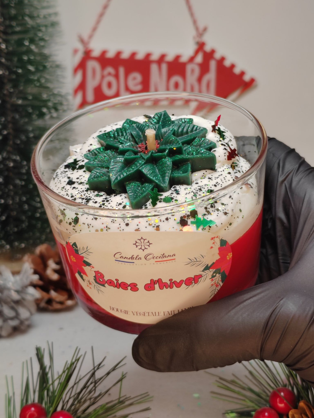 Composition de la bougie : cire de soja, cire d'olive, parfum de Grasse, colorants naturels.